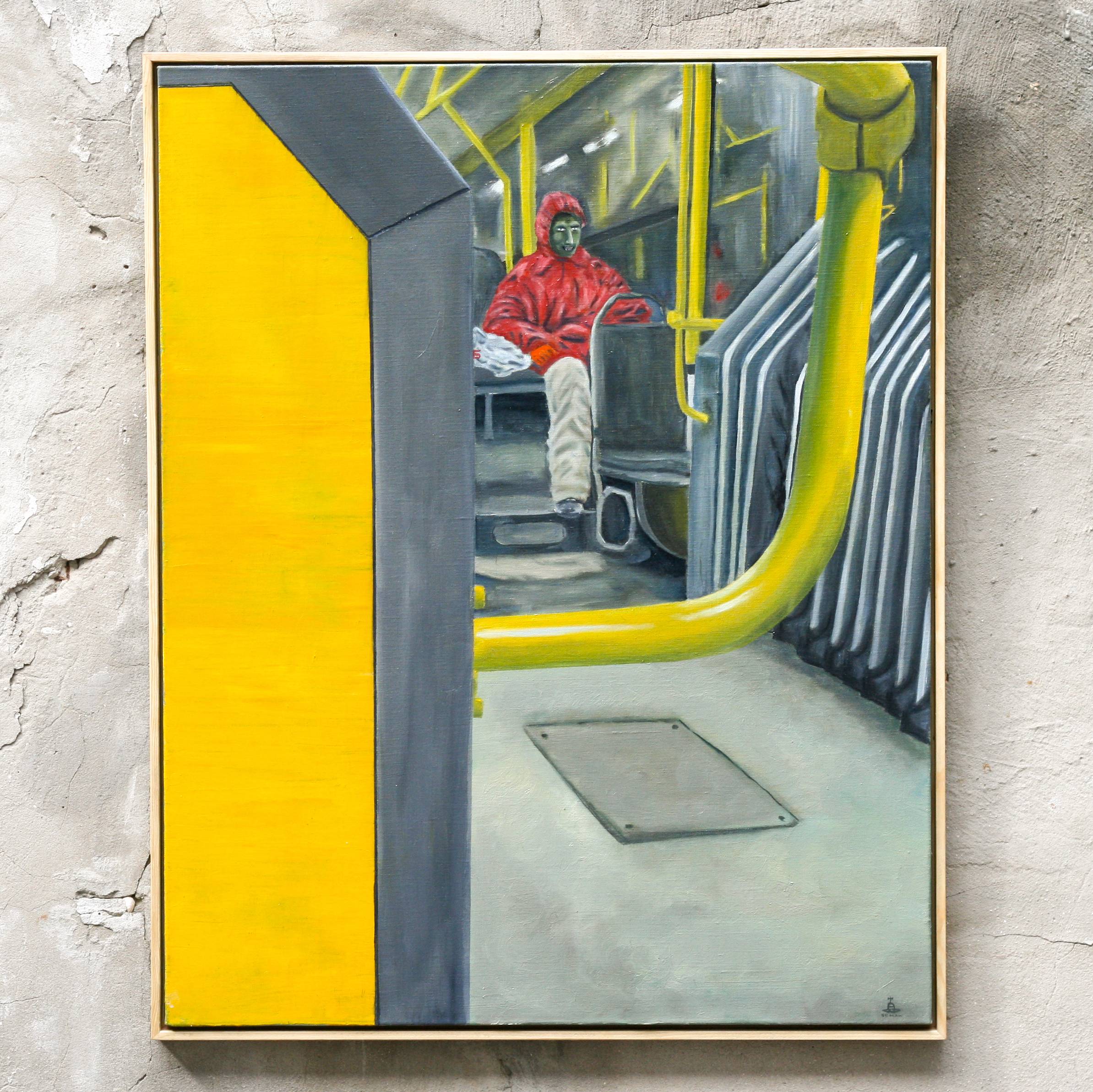 In the quiet atmosphere of the empty trolleybus carriage "HARMOSHKA," I noticed a reptiloid in a red jacket, carefully holding a package from the "ATB" supermarket. His facial expression was calm, but there was a hint of mystery in his eyes that intrigued me. The package he held could contain the key to unraveling his story. What was he looking for in the store? Perhaps he was preparing for an important event or occasion? And what did he plan to cook with his purchases? These mysteries stirred my imagination, and I couldn't resist the urge to secretly photograph this enigmatic passenger.