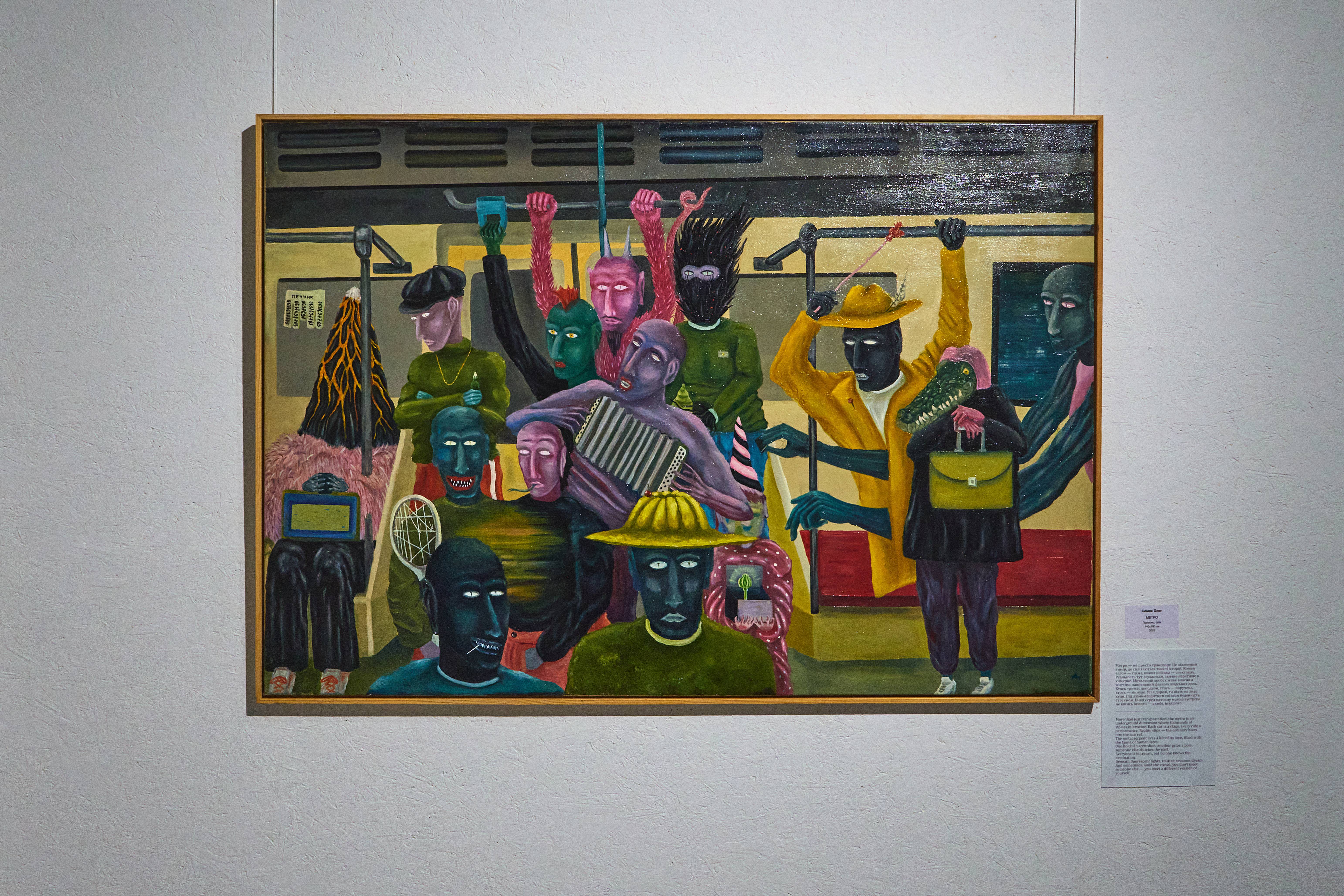 This painting is a glimpse into an underground dimension, where reality shifts and the familiar takes on a new form. The metro here is not just a means of transport, but a living metallic worm carrying its own encyclopedia of characters: reptiloids, conmen, street toughs, musicians, athletes, and their demons. The train car transforms into a stage, where each figure is a story in itself—a fragment of the city, a fragment of you.