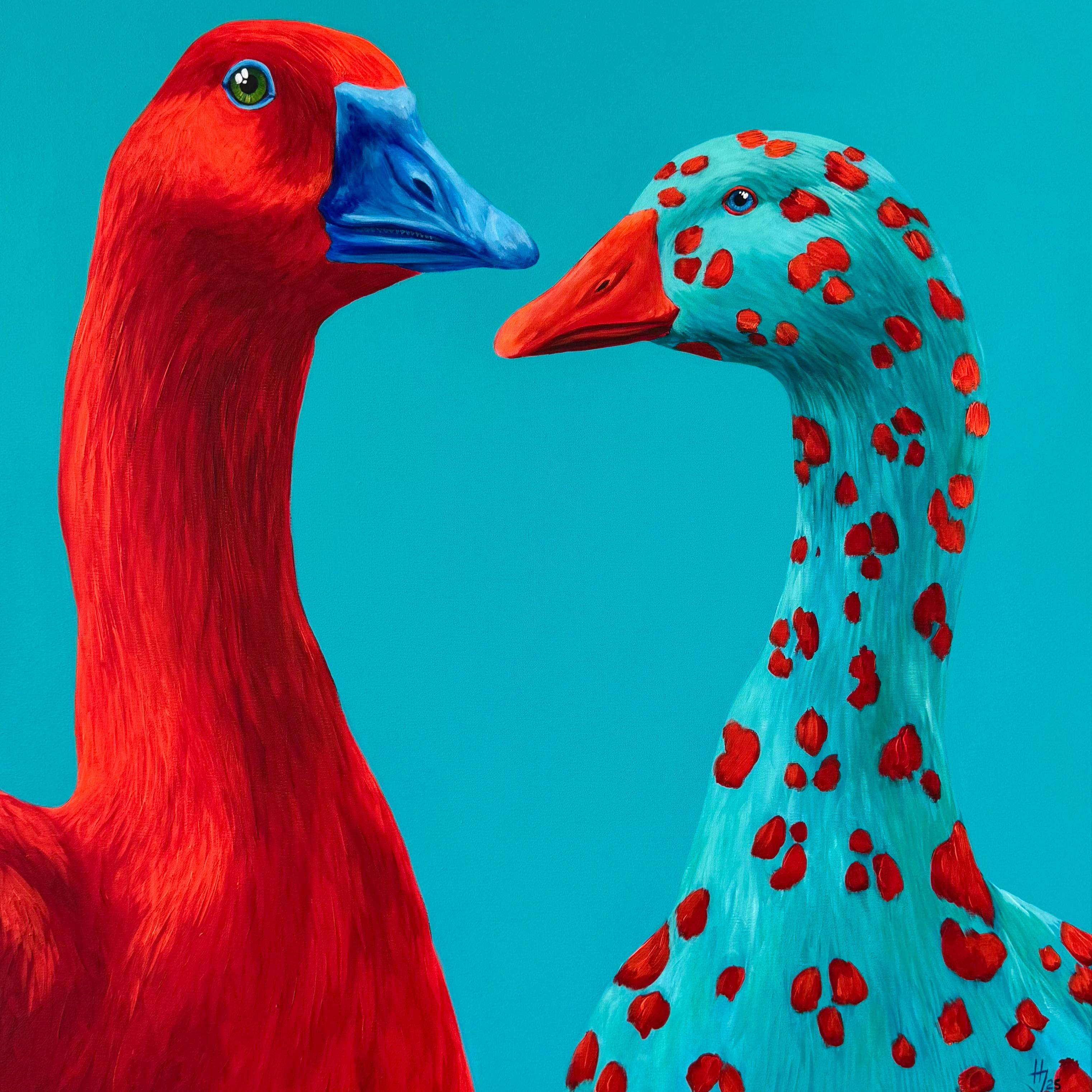 Her work is primarily in the surrealist style, with a particular focus on paintings of geese. The artist chose this form of expression to convey her inner feelings.