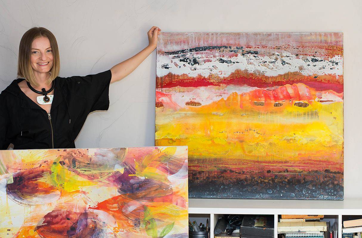 She works with such mediums as painting, graphics, land art, video, ceramic sculpture, and installation, while the leading media is still painting.
