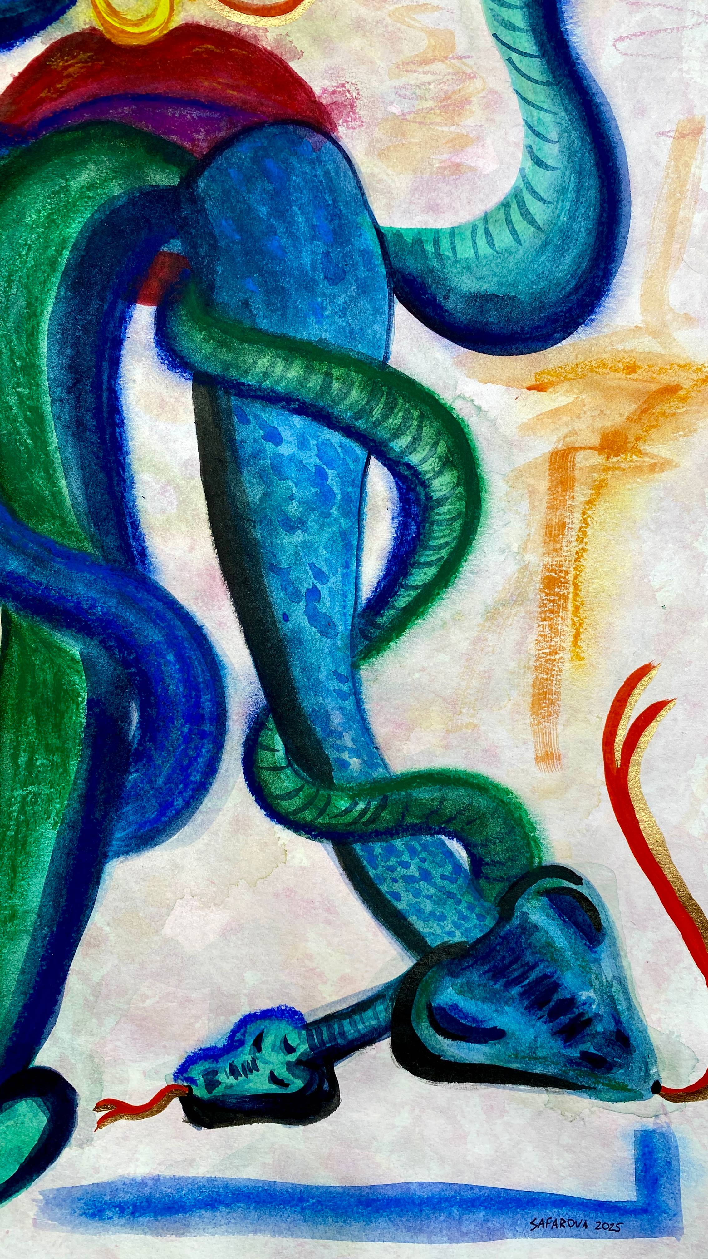 Safarova’s visual language often bridges the deeply personal with the mythic and the political, grounded in both the natural world and the layered cultural context of post-soviet and postcolonial experiences.