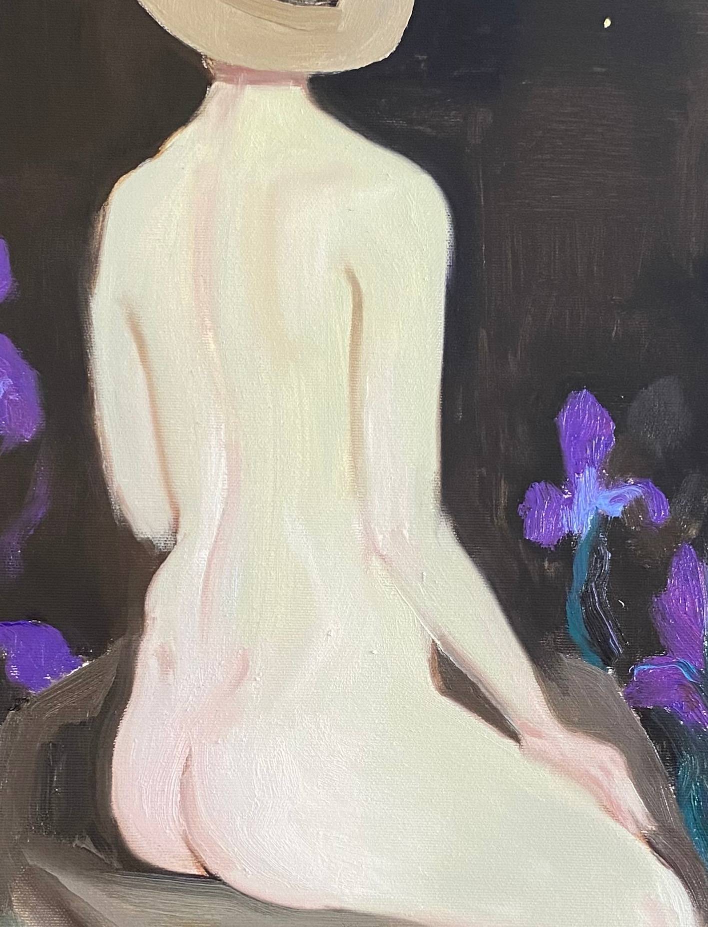 In the painting, I depicted a fragrant summer night. A naked woman, enveloped in the fragrance of irises, contemplates the stars. This picture is about romantic calm, when you can be alone with yourself and feel a pleasant immersion in your thoughts.