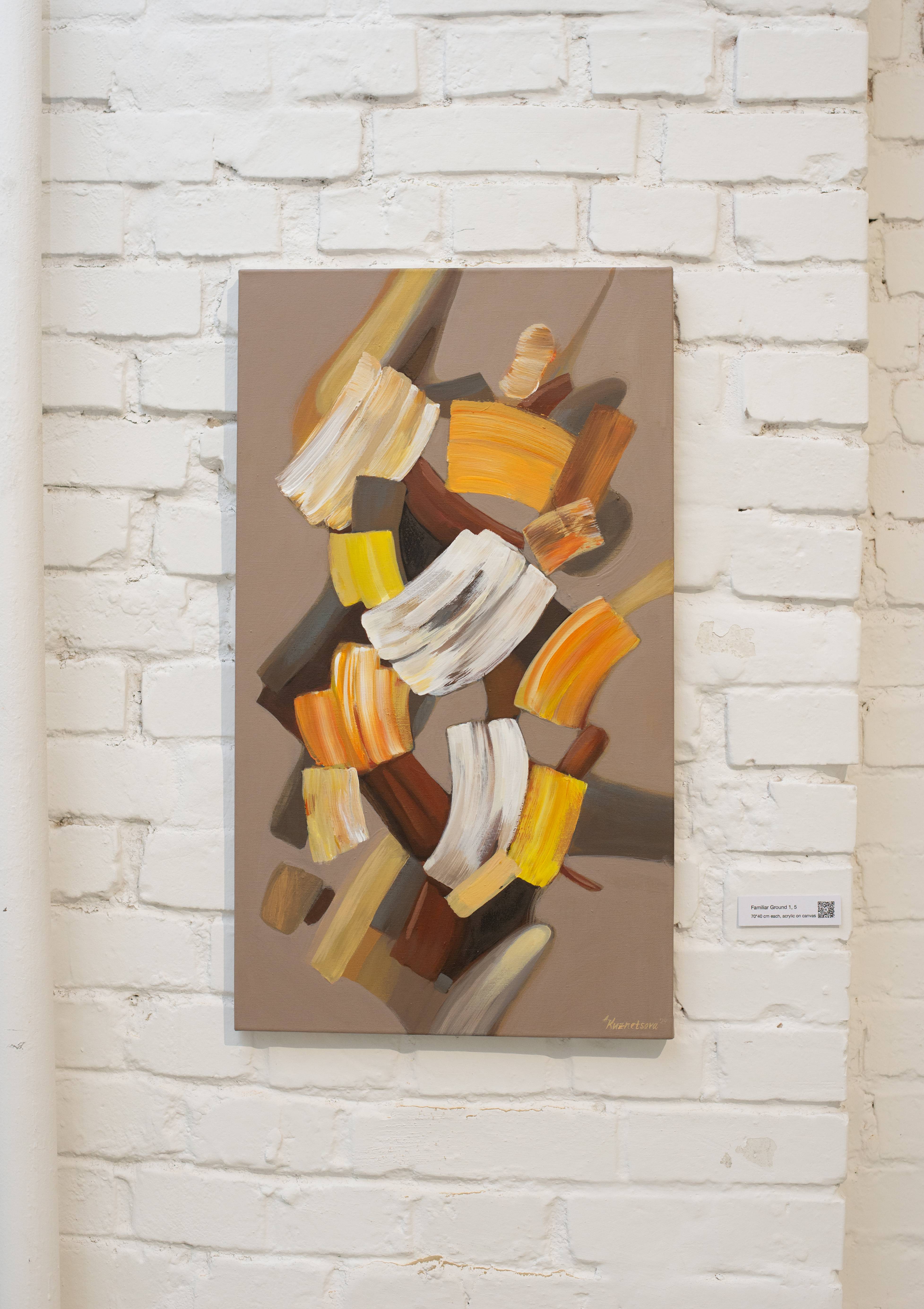 This is one of the first works in the series. It was made back in 2022. Had a preliminary sketch. 1 of 5 go in pairs, compositional, structural. Familiar Ground is a metaphor for my personal return to familiar and simple materials: either purely oil paints, as in August Time, or purely acrylic, as in Familiar Ground 1.5; or a combination of them, as in Big Horizon. Took part in Familiar Ground solo show (2025).