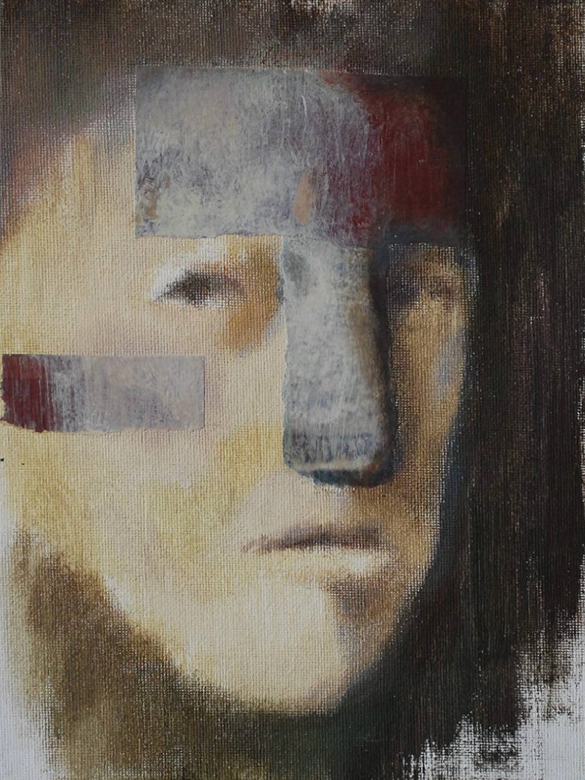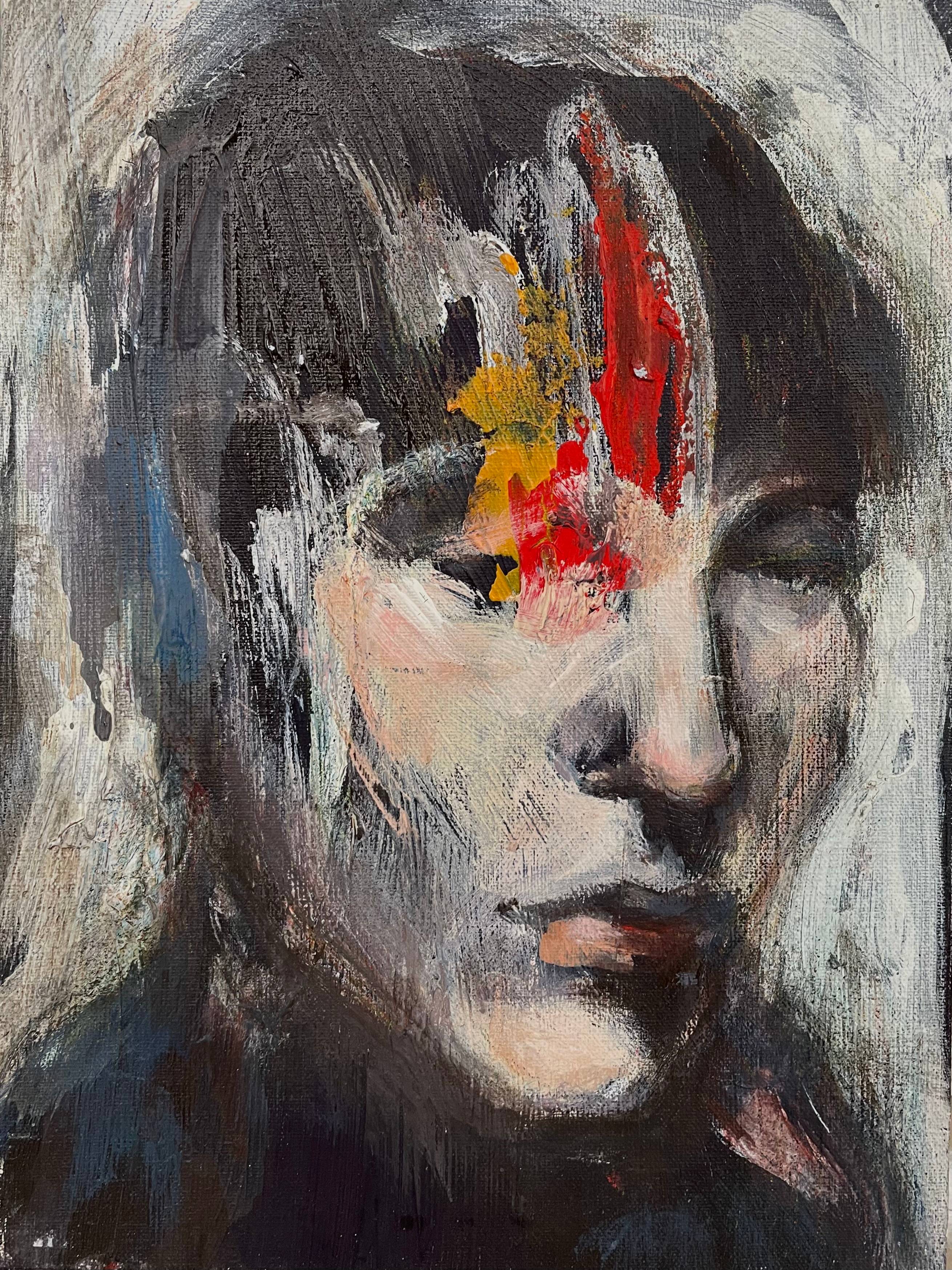 This is the second work from the “Month of Portraits” series, which was started in 2018.This work, as well as some of the other works in the series, was made in the technique of acrylic painting and collage. Initially, there were strips of colored paper on the format and further search for the image, head rotation, color spectrum already emanated from a given composition.The small size of the work translates the private, somewhat closed nature of the images.Portrait as a story, portrait as landscape, portrait as object, portrait as emotion ...The picture is made in mixed media on canvas pasted on cardboard.