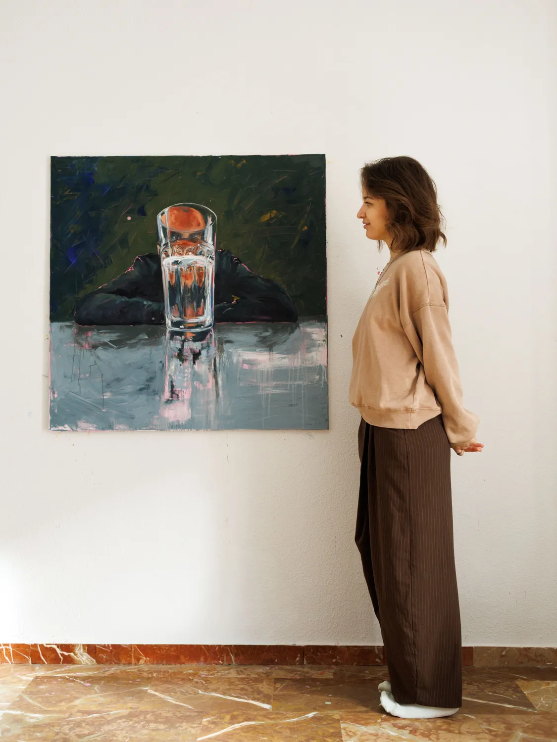 In this series, the "mirror surface" represents that very thought. I am exploring a layered vision: when a person is present but unreachable; visible but separate; near, but always perceived through something else. It is a study of multiplicityāthe absence of specific characters, the presence of the invisible, and the confrontation with one's own position as an observer.