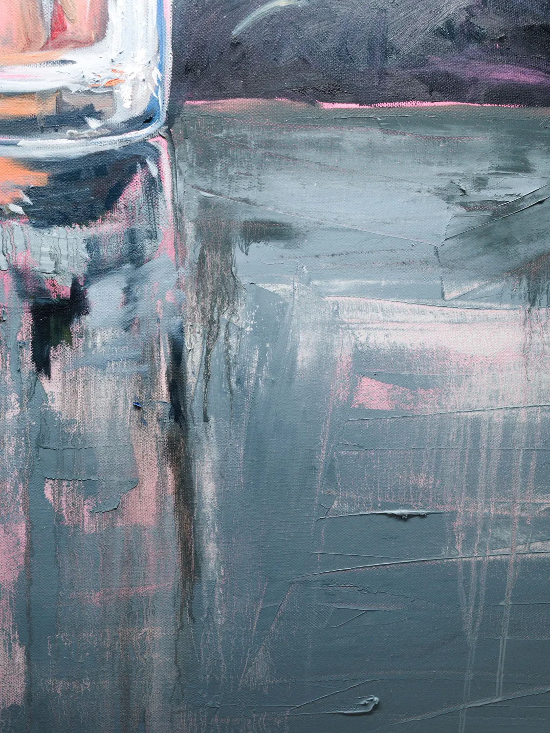 While creating this work, I touched upon the darkness within myself and within people. Its density frightens me, yet draws me in to understand it. Now, sitting before the painting, I gaze into it, letting my thoughts wander and unfold. This is the first work that I cannot yet fully comprehend.
