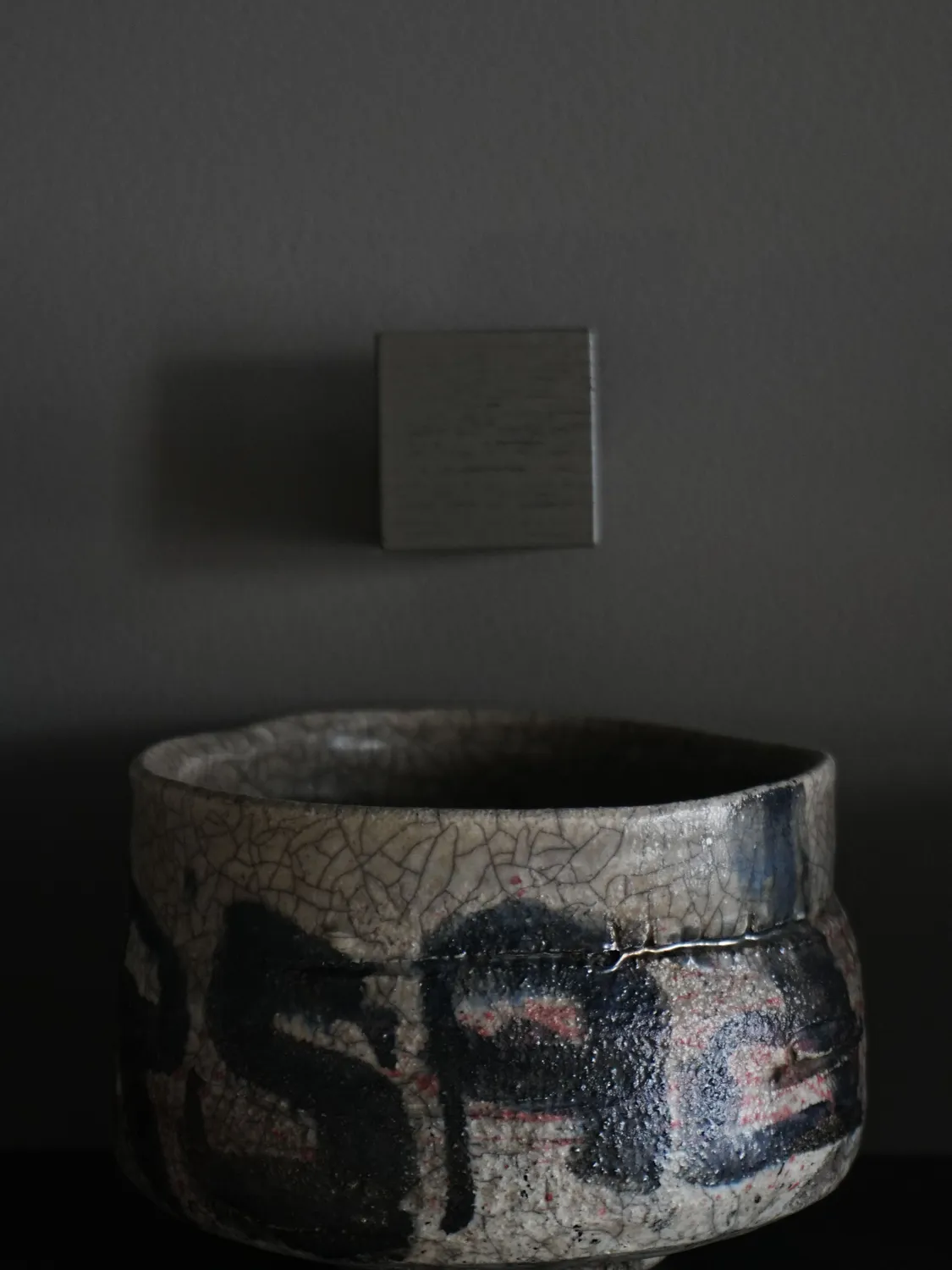 One of a kind chawan, wheel thrown, 1200 c fired, raku fired “Tag” series