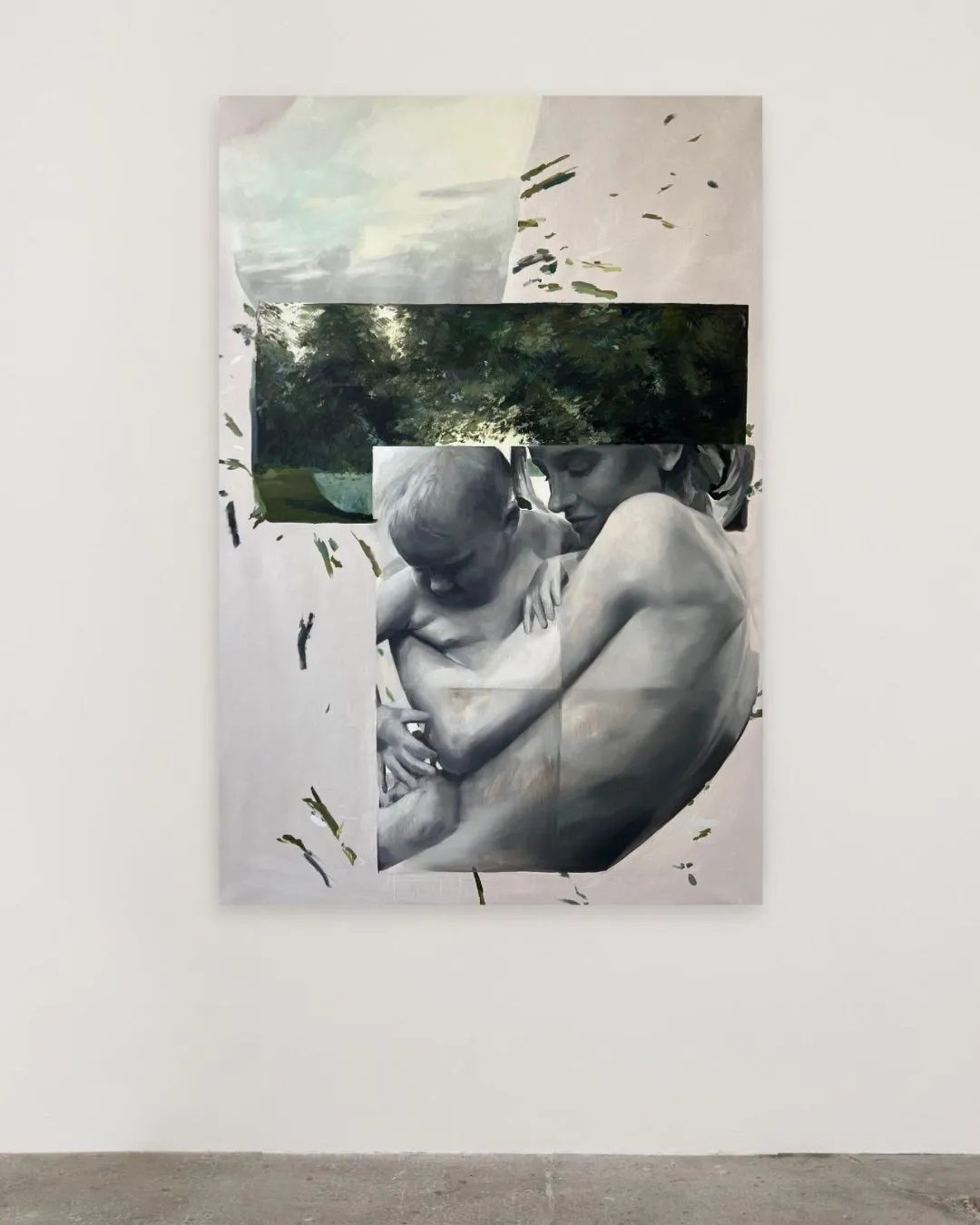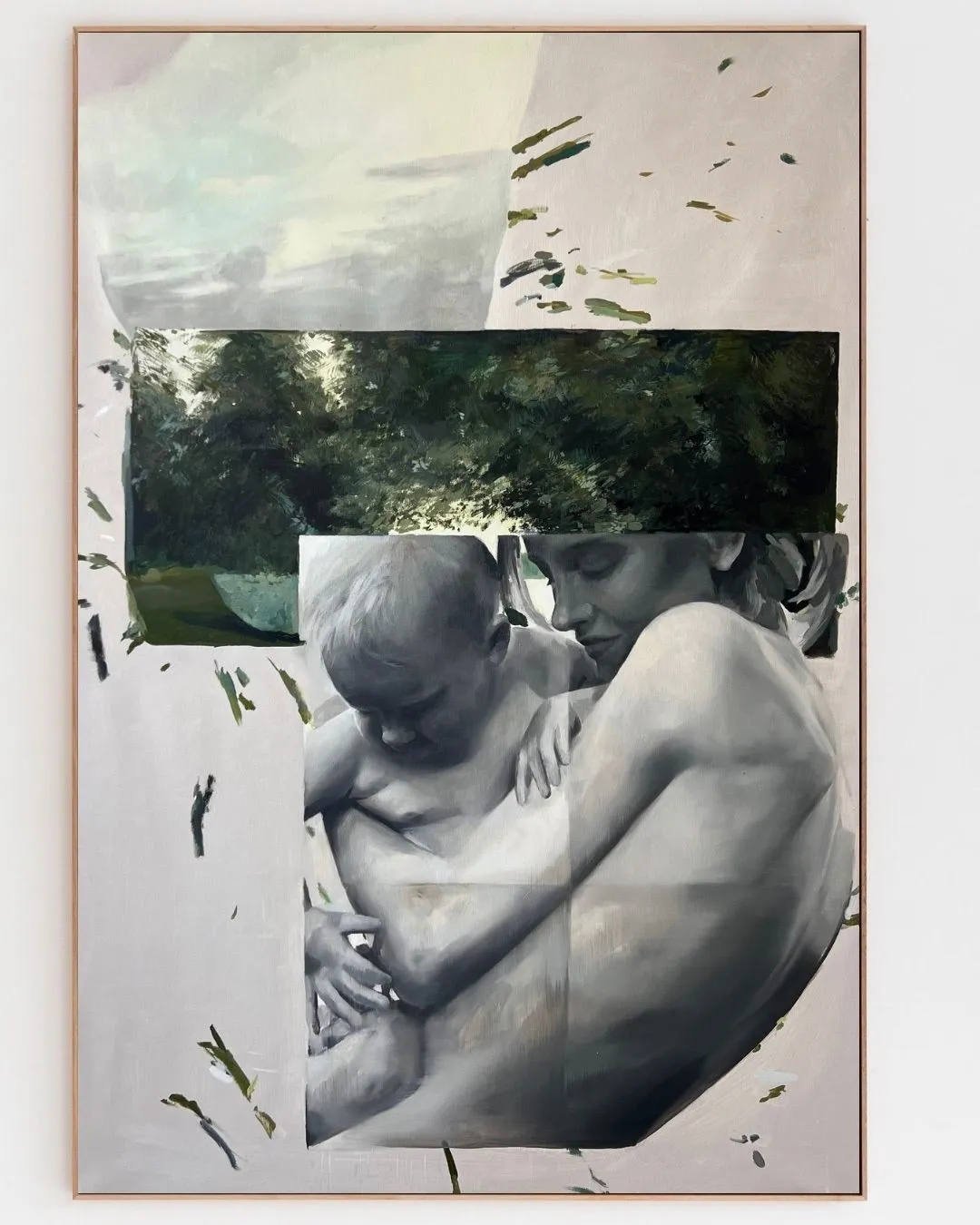 Like petrichor β the fleeting scent that emerges after a long silence of drought β the works evoke a space between body and nature filled with meaning that is both tender and powerful. The black-and-white palette of the figures contrasts with the colorful collage fragments, emphasizing the tension between the felt present and the shadow of the past, between the visible and the hidden β between the silence of the body and the voice of memory.