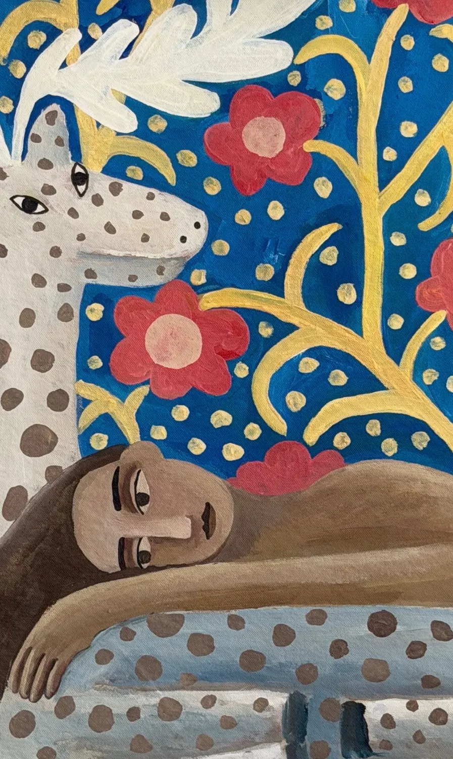 Fedchyshy is inspired by folk art, mythology, and people. She often turns to the topic of the human connection with nature and the metamorphosis of bodies. Her art becomes a dialogue between inner and outer worlds, where humans and animals coexist in harmony, sometimes merging with each other to reveal deeper truths about who we are.