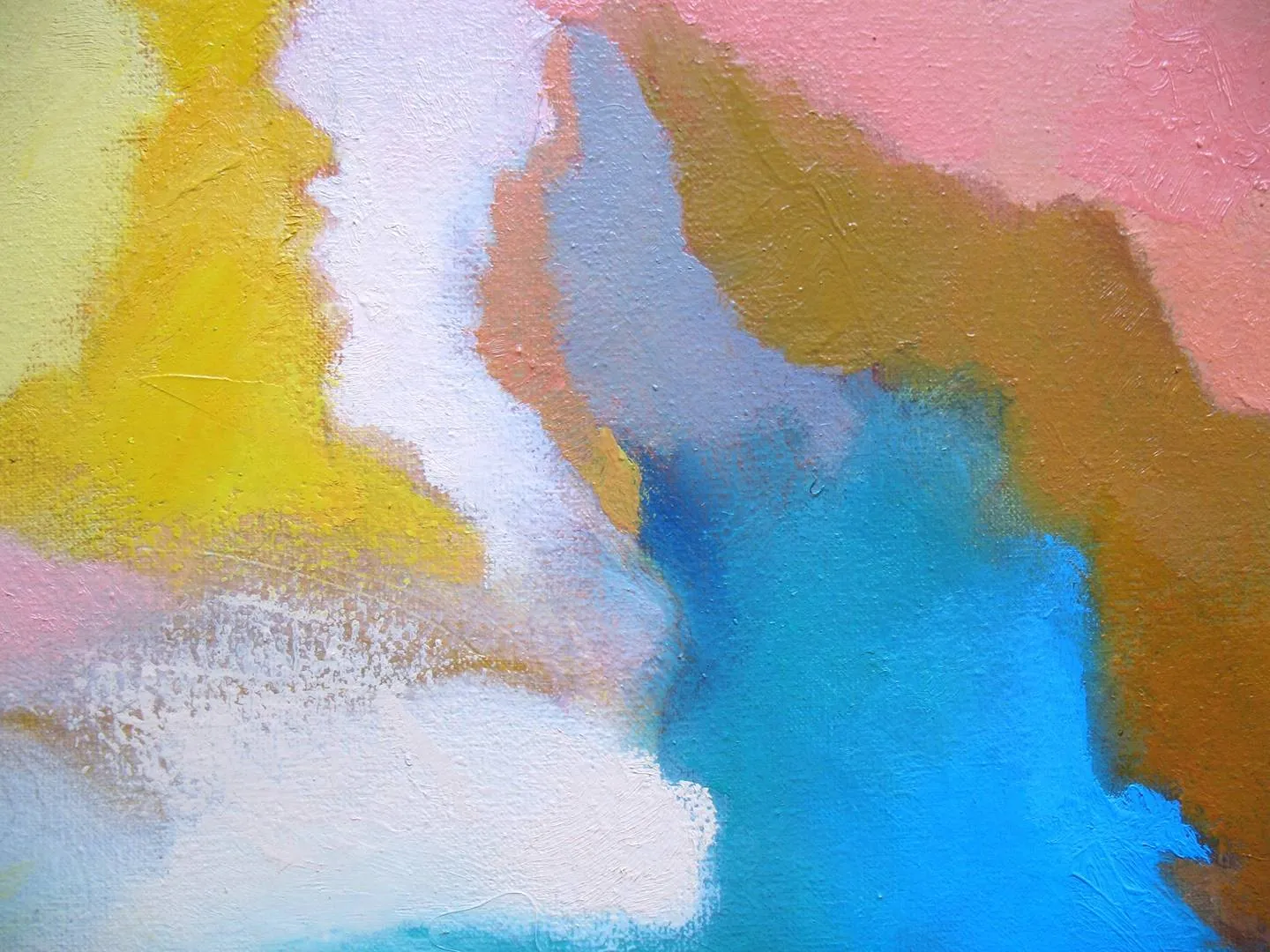 Soft spots of color let come in to the picture plane. They have an inner energy, direct their impulses to the viewer, infecting him with their mood. Their abstraction from recognizable silhouettes and images awakens freedom of association in the viewerand gives him the opportunity to see in the picture what his mind is tuned to at the moment of perception. Rainbow clouds from colored dreams, create bright, emotionally rich images and stream of positive thoughts. There is a visualization of relaxation during meditation. It is based on the idea of the interdependence of the visible and sensually perceived world and understood purely theoretically by abstract-abstract laws of universe.
