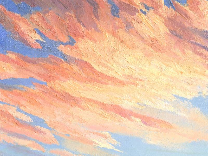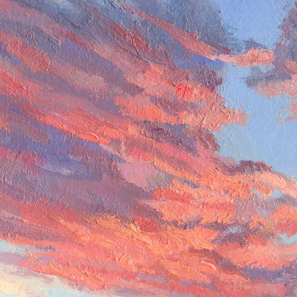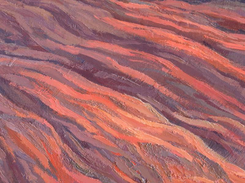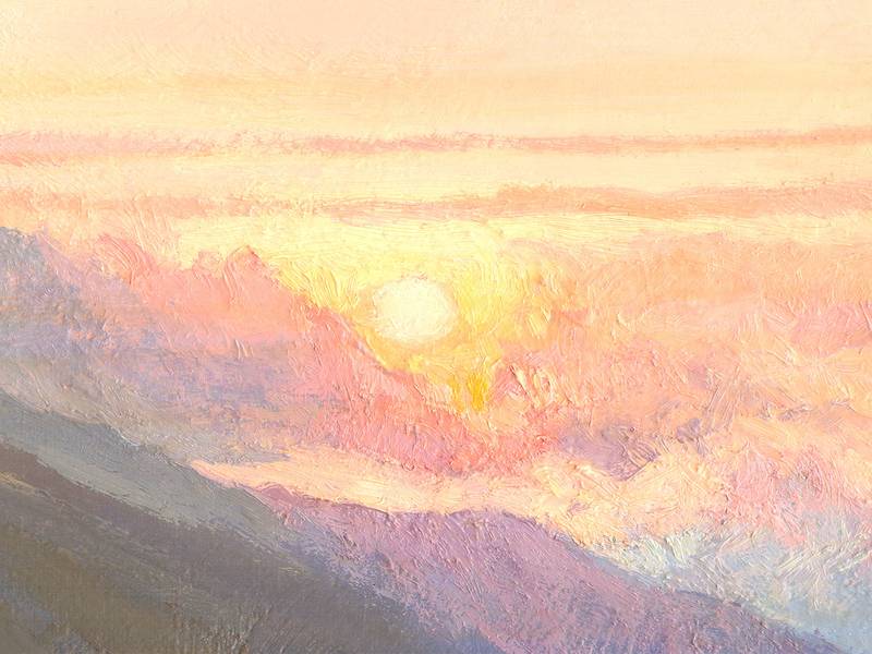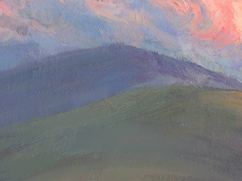 No matter how long humanity has existed, to this day we are all fascinated by the spectacle of the sun rising or setting. No matter how different we are, every person admires these daily astronomical events. They continue to touch us to the core. A joint meeting of the dawn or dinner at sunset acquires the status of a ritual and sacred rite. When the sun is low on the horizon, unusual lighting is created. It miraculously transforms the surrounding space, giving it a mysterious, promising look. Even ordinary architectural structures in the city begin to look fabulous, but what about nature, deprived of the rectangular rationality of the urban environment? The author of this landscape was also imbued with the solemnity of the sunset in the mountains. The unique play of sun glare on the lumpy surface of the earth, fluffy clouds illuminated from below, contrasting combinations of heterogeneous textures and colors - all this magnificence teaches us to appreciate the elusive moments of transient existence, learn to look inside ourselves and realize our unity with the Universe. Take a little break from the endless bustle of your life, and join the ability to abstract and contemplate. Let just one look at this picture put you in a meditative state, even if you don’t live in nature or it’s not evening.