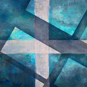 There’s something grounding about geometry. When the world feels abstract, shape offers structure. When feeling overwhelms, form brings focus. This collection gathers works built around line, pattern, and repetition. Not just minimalism, not just design, but the emotion that comes when structure meets subjectivity. These are works that think in shape, that hold tension in balance, and where clarity is not the absence of feeling but its framework. You will see grids, triangles, measured colour, and repeating motifs. But behind each is something deeply human. Geometry, after all, is ancient. It shows up in religious sanctums, city plans, sacred diagrams, and modernist paintings. It’s a visual language that cuts across time. Some of these works bring softness to precision. Others let the hard edges speak plainly. Either way, they demand attention, not for their complexity, but for their clarity. And clarity is rare. For collectors, this selection offers pieces that work well in space. They complement interiors without vanishing. They bring order, rhythm, and restraint—but never at the cost of emotion. Geometry doesn’t flatten feeling. It reveals it. – Selection cover: Білі тіні by Iurii Psheniychnyi