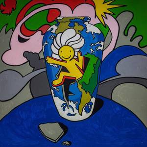 This selection is somewhat of a contradictory mix – on one hand, it features bright, colourful paintings full of detail, irony, and a touch of naïve style; on the other hand, minimalist sculptures. To put it simply: life, game, death, elegance, nature, silence.