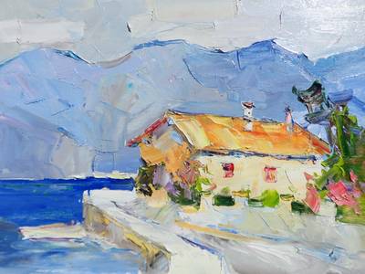 Lake Como Expressive and gestural Painting Yehor Dulin - Subjektiv.art