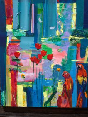 Flamingo Abstract Painting Lana Korolievskaia - Subjektiv.art