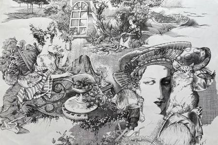 Skip the labyrinth of drop-down menus. Subjektiv has an entire room devoted to Graphic, Illustrative & Typographic Drawings: more than thirty originals in ink, graphite and hybrid etching that wear the style tag “graphic.” Wander in and you’ll meet Serhii Hrekh’s Butterfly (15 × 15 cm, etched wings sharp enough to slice air) and Lizette Nin’s four-metre ink cascade Body as Homeland—two proofs that line can whisper or roar.