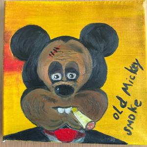 Want proof the stock moves fast? Mahasti Hamidzoda’s Old Mickey Smoke (20 × 20 cm, charcoal, pastel, oil) turned an exhausted cartoon rodent into a nicotine-tinged icon and was verified, priced, and one bookmark away from disappearing the last time I checked.