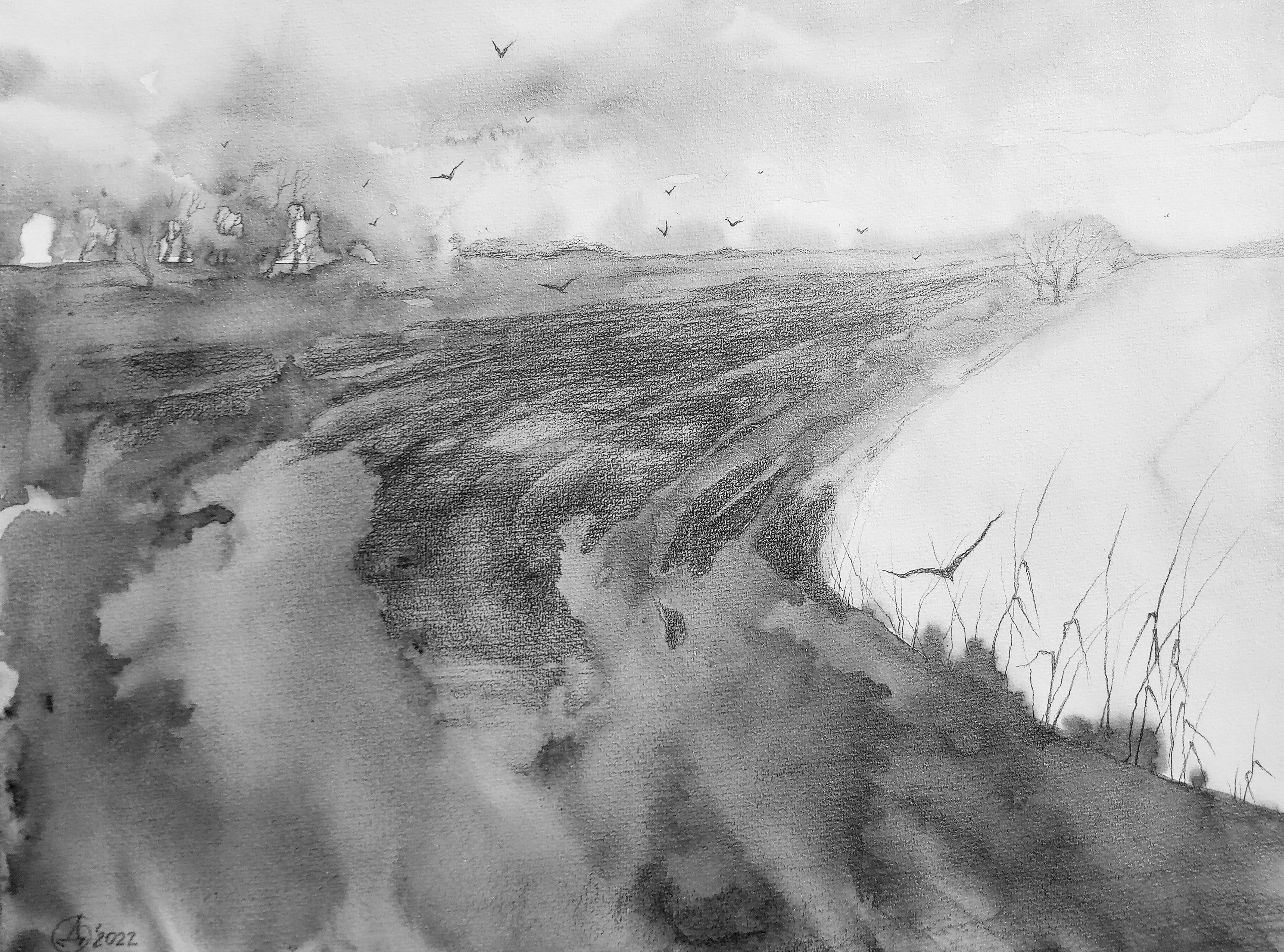 Watercolour & gouache washes: translucent mood pooling around crisp contour lines.