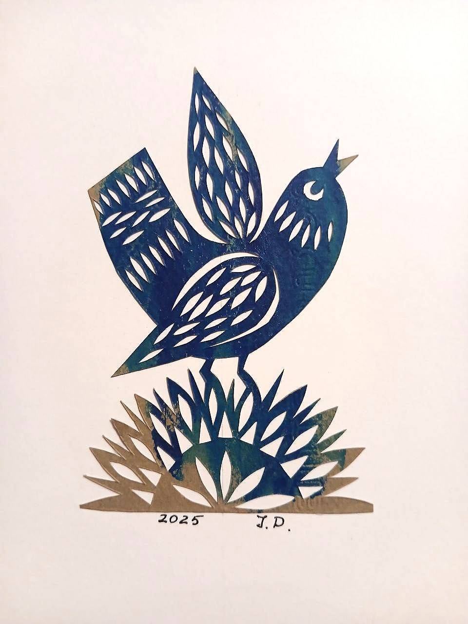 Anything strictly visual that fuses more than one technique: stitched fabric over watercolor washes, newspaper clippings sealed beneath resin, driftwood painted neon and bolted onto steel. Add sound or video and you’ve wandered into multimedia; keep it retinal, and you’re in mixed-media territory.